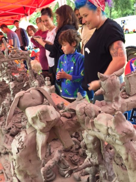 As part of Hull 2017’s enthusiasm for the material, Clayground was invited to devise a clay session as part of National Play Day on August 2nd. Hosted in Queen’s Gardens and supported by Family Information Services, we worked with a ton of clay from the wonderful Potclays.